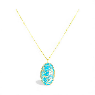 Gold Vermeil Oval Turquoise Pendant Necklace